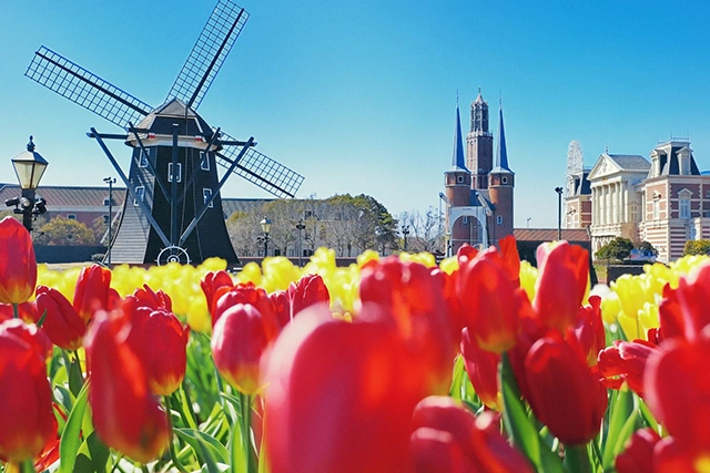 九州・長崎を代表するエンターテインメント施設「ハウステンボス」。四季折々の花々に囲まれ、オランダの風景と相違ない美しい街並みや運河、煉瓦造りの建物群を1年中通して楽しめます。園内全体の素敵な雰囲気は、爽やかな日中の散歩にも、ロマンチックな夜のライトアップにも、一日中それぞれ違った魅力が満喫できます。